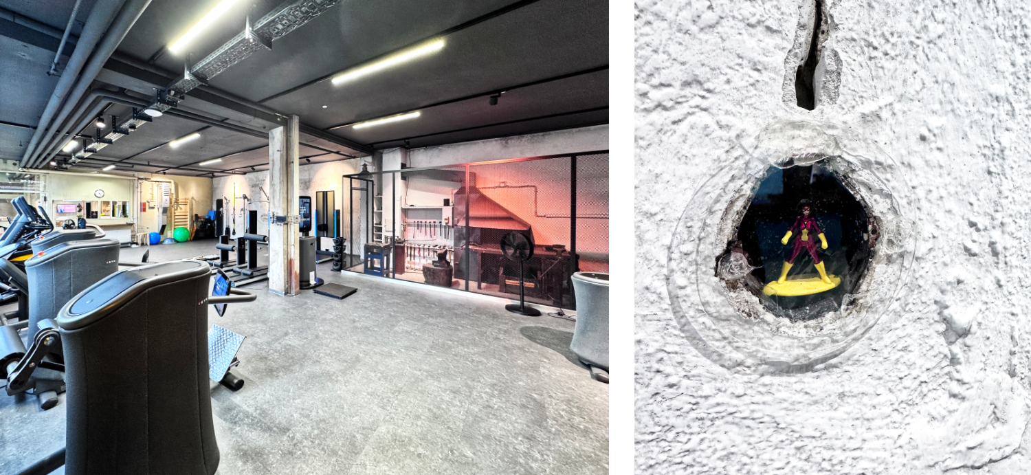 ◽ In alten Wanddosen verstecken sich Mini-Comicfiguren – kleine Überraschungsmomente für Entdecker und Superhelden